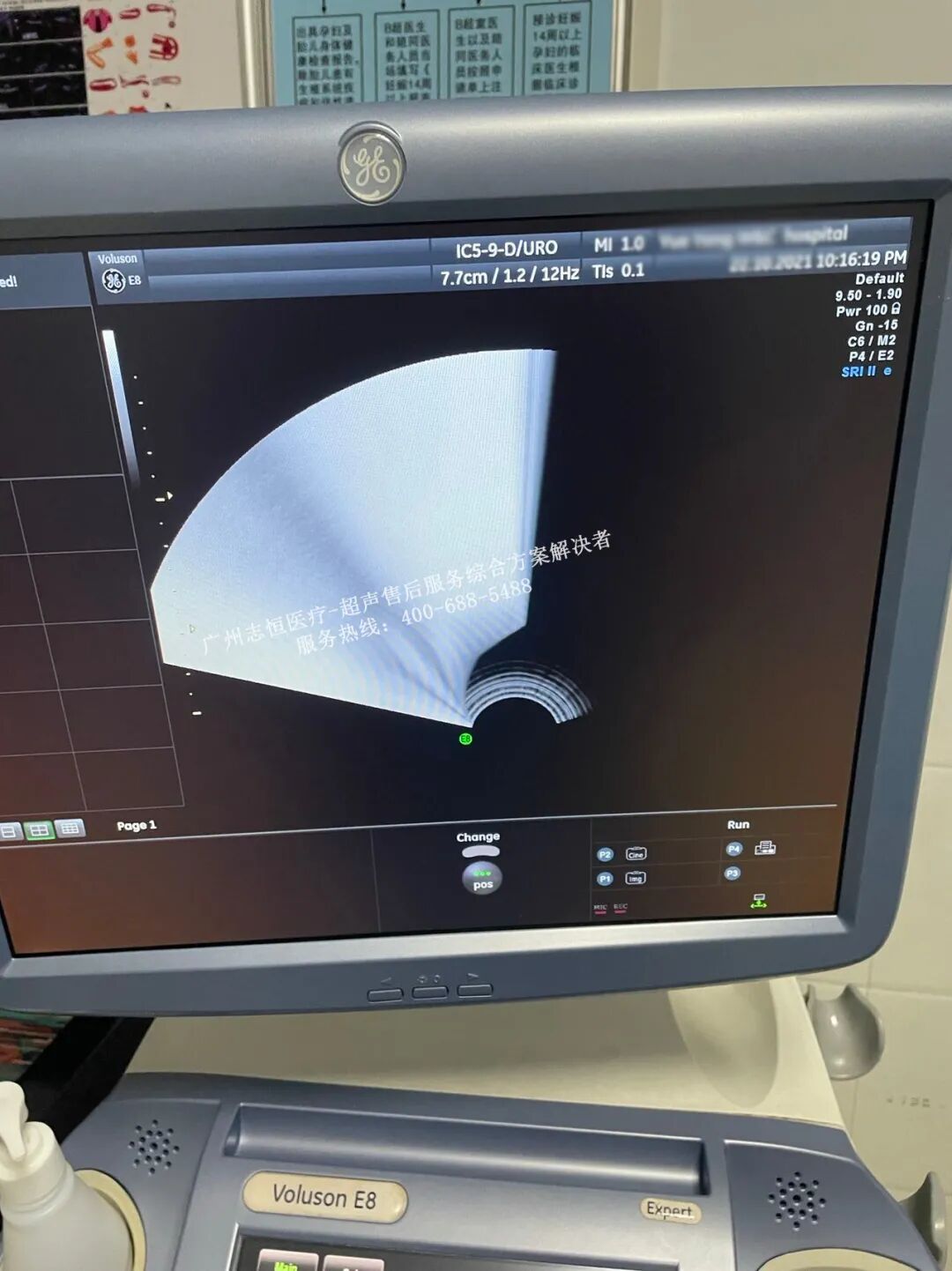 GE VOLUSON E8超声图像异常,切换探头时图像出现亮片干扰。