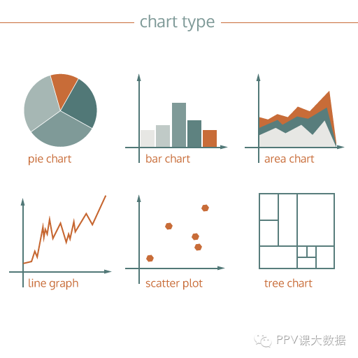 图表是数据视觉化表示的特殊方式。表示数据的方法有很多,如使用不同的符号、形状和排列,我们把这些称之为图表的类型。一些图表类型你比较熟悉,如条形图、饼图、折线图,但其他类型你可能就很少见了,如桑基图、树图、等值线图的地图。