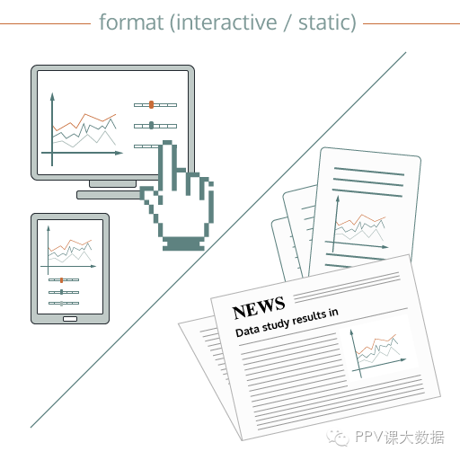 交互式可视化允许您修改,操作和探索计算机显示的数据。绝大多数交互式可视化系统在计算机网络上,但越来越多出现在平板电脑和智能手机上。相比之下,静态可视化只显示单一的、非交互数据,它通常是为了打印和在屏幕上显示。