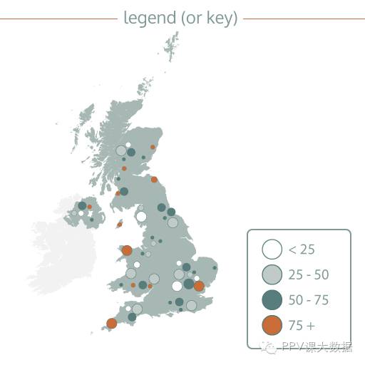 许多图表使用不同的视觉样式来表示不同的数据,如颜色、形状或大小。一个图例或样例告诉你这些样式是什么意思,从而帮助你阅读图表。