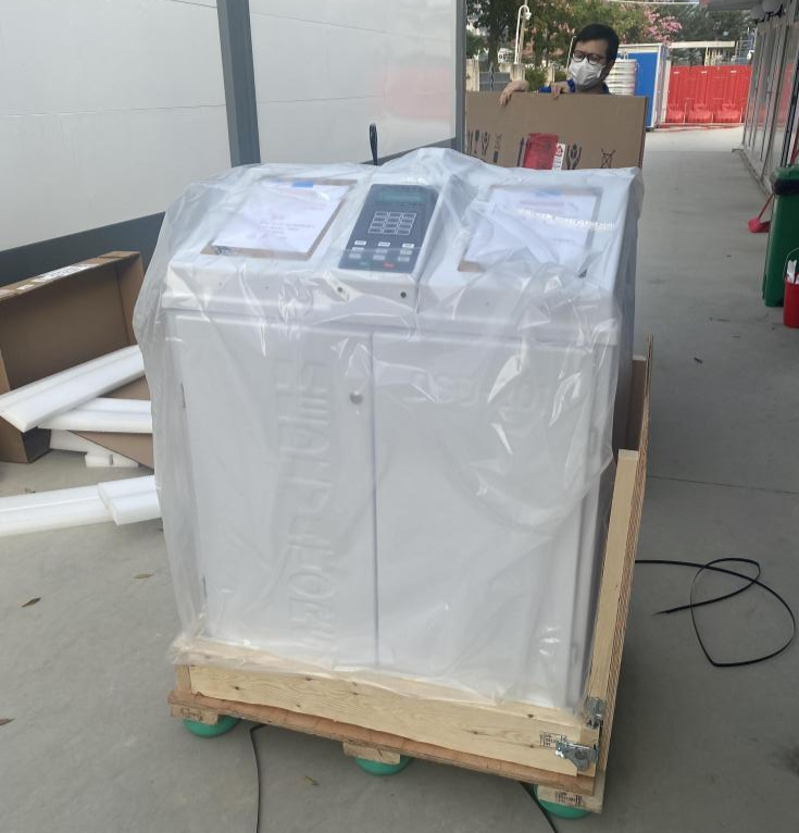 8) 等待直至B站消毒液储液槽液位下降1/4左右,机器内部没有声音,按下”STOP(暂停)”键