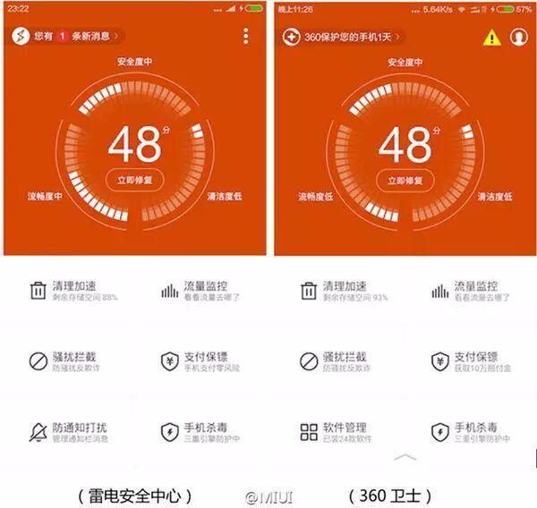 3.雷电安全中心本来就是OEM了360手机卫士的骚扰拦截、清理加速等功能。小米安全中心同样OEM了猎豹等其他多家厂商的产品。这又何足为奇?