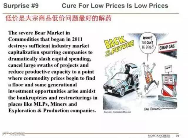 9、 大宗商品低价最终会利好整个行业。低价会引导去产能,一部分公司会破产,然后行业景气回升。等到这个行业一部分公司破产的时候,我们最好的投资机会就来了。