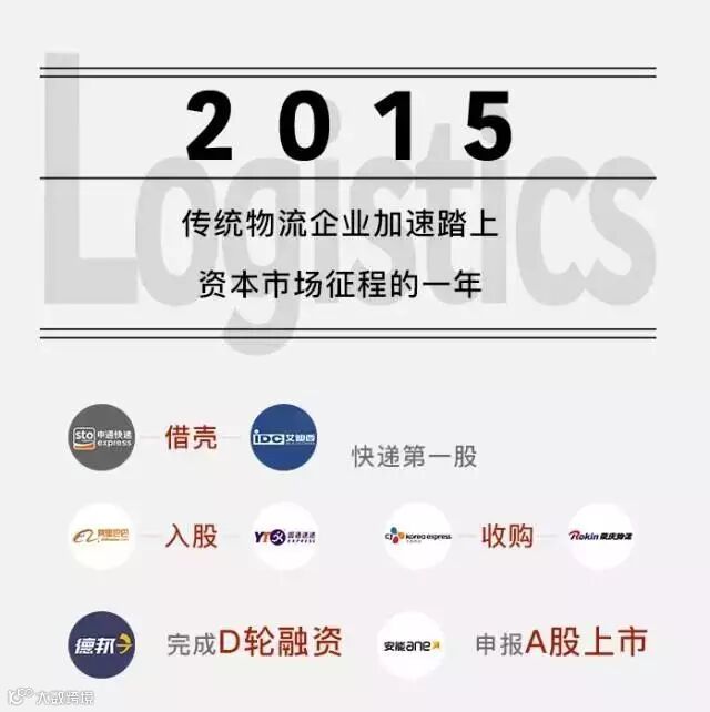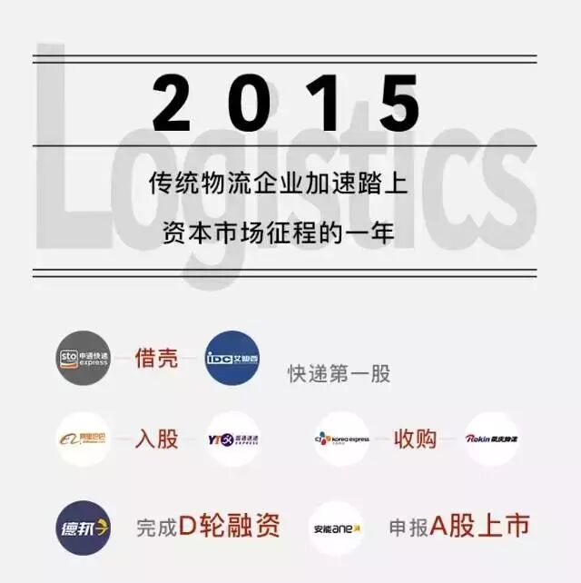 2015年物流行业风起云涌,传统物流公司在境内外资本市场上积极运作,新兴创投公司从上半年“有钱任性”的烧钱扩张到下半年随着资本收紧趋于理性。