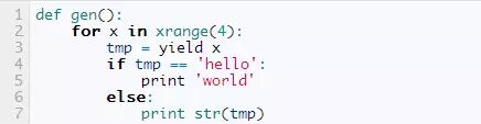上一次执行到yield 1后暂停,此时我们send(‘hello’),那么程序将收到‘hello’,并给tmp赋值为’hello’,此时tmp==’hello’为真,所以输出’world’,并执行到下一次yield 2,所以又打印出2.(next()等价于send(None))