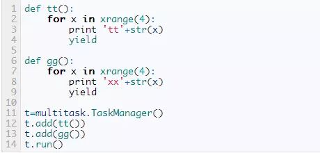这里有必要说一下multitask模块(不是标准库中的),看一段multitask使用的简单代码: