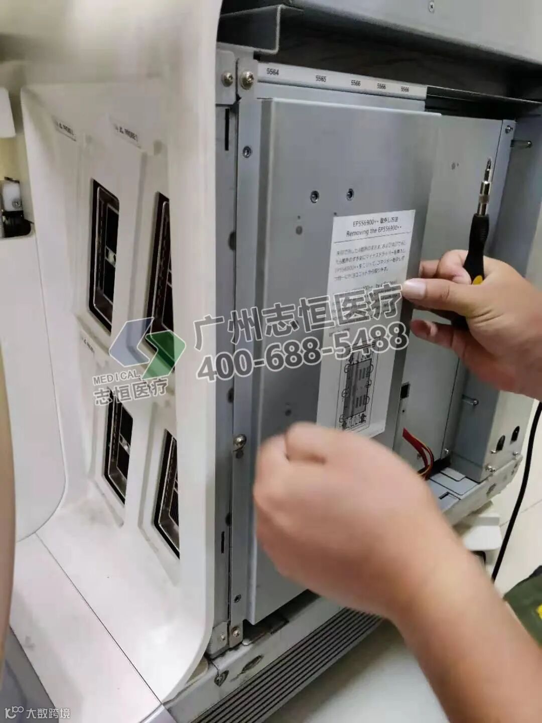1. 首先来检查通道板是否存在故障。通道板位于正对机器的右手边,所以需要拆下机器右手边的外壳,拆卸该外壳时需拧松机器后壳上的螺丝,然后往上提即可,机器后壳如图(2)所示。