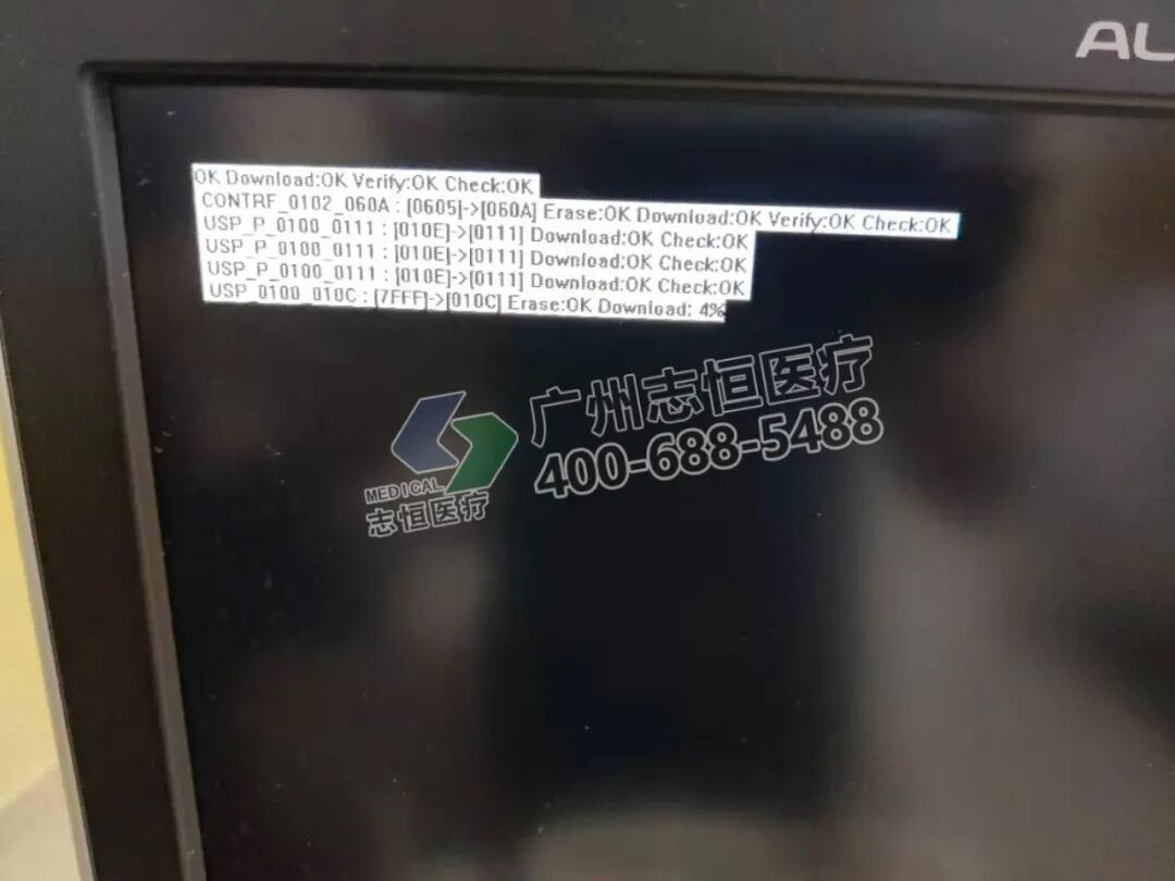 如图(1)所示,开机便会自动安装系统且会卡死在USP 0100下载界面,不能进入系统,所以怀疑是系统或者5566通道板故障导致,接下来一一进行排查: