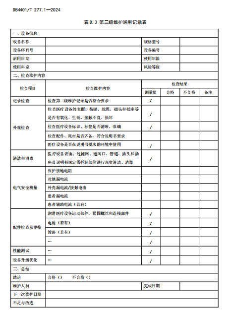 - 《医疗器械使用质量监督管理办法》:聚焦医疗机构使用端的质量管理,明确要求医疗机构落实医疗设备维修保养主体责任,核心是建立并严格执行维修记录制度与档案管理制度,确保维修过程可追溯、可核查。