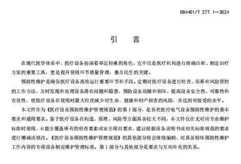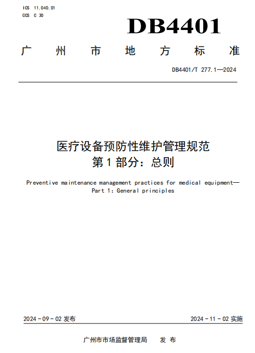 关注“匠医工医械服务平台”,后台发送“标准”,即可下载电子版文件DB4401/T 277.1—2024《医疗设备预防性维护管理 规范》