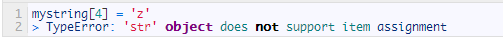 和列表不一样的是你不能追加字符,也不能更改字符串中特定位置字符。