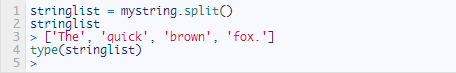 每个单词都变成了列表中的元素,我们也清楚的看到类型变为列表。