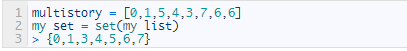 因为set只能包含唯一的元素,所以重复的6被移除了。从已有数据创建唯一元素集合,set()是个非常好的方法。