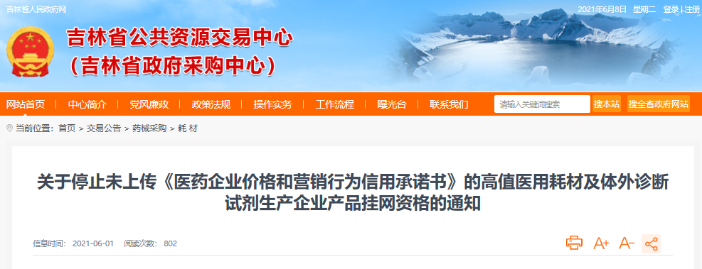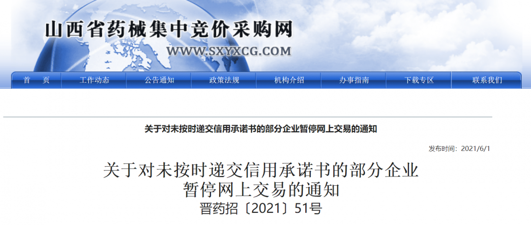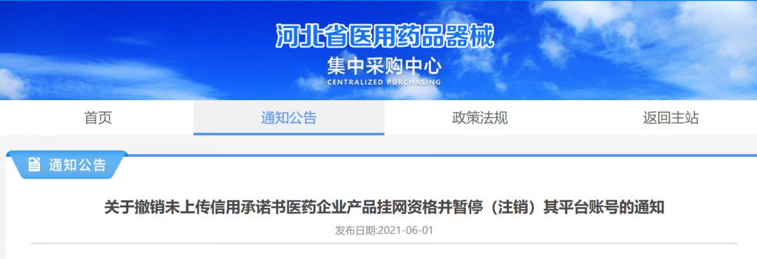 其实近一个月以来,各省药械采购平台多次发布通知,提示各大医药企业尽快提交《承诺书》,以防止挂网交易收到影响。