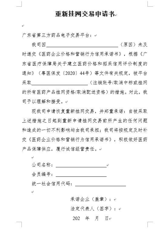 ,需重新恢复平台账号或产品挂网交易资格的企业,请提供未按时提交信用承诺的情况说明(企业自拟)