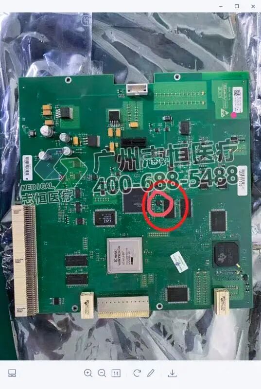 2、不插探头显示心脏和腹部探头,首先怀疑是前后端通讯有问题,还原原机RFI和数据芯片后开机仍然是不识别探头,咨询技术支持后判断是RFI通讯问题,再次更换RFI板子,第二次更换RFI的时候更换了下面这个芯片: