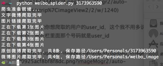 定位到当前目录下后,命令行执行python weibo_spider.py user_id