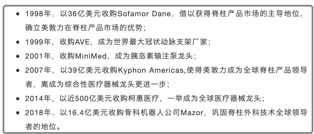 对美敦力而言,外延式并购是其稳坐全球医械市场龙头宝座的关键因素。