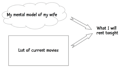 数据挖掘的重点在于找到数据中的模式。对于少量的数据,我们非常擅长在大脑中构建模型,搜寻模式。比如,今晚我想和妻子看一部电影,我很清楚她喜欢什么类型的电影。我知道她不喜欢含有暴力元素的电影(这就是她不喜欢第九区的原因),她喜欢卡夫曼的电影。我可以利用这些信息来预测她会对什么电影感兴趣。