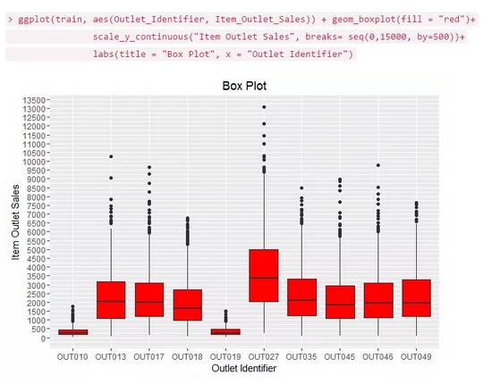 使用类型:箱线图被用来绘制分类和连续变量的组合。此图有助于我们分辨数据分类并检测异常。