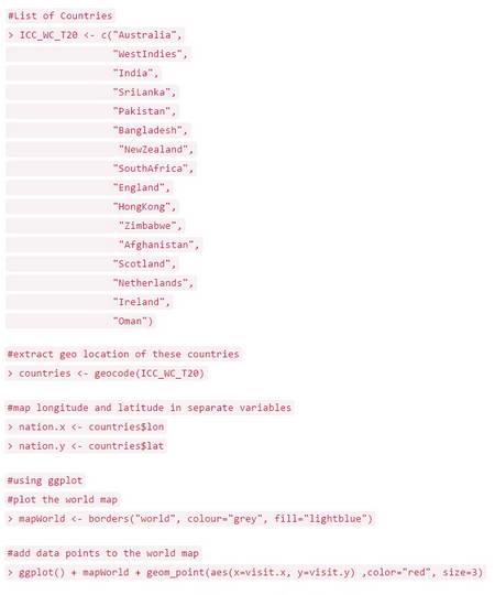 这样看起来就更好。ggmap package 是与谷歌地图连接的,因此提取详细的地段直接连接。但是我有一个遗憾。如果你仔细看这幅地图,你会发现这个地图是不完整的。西印度群岛没有在这个地图上显示。我试着从多个源中提取数据,但是并没有成功。如果你们中的任何一个能解决这个谜题,请分享你的解决方案吧。