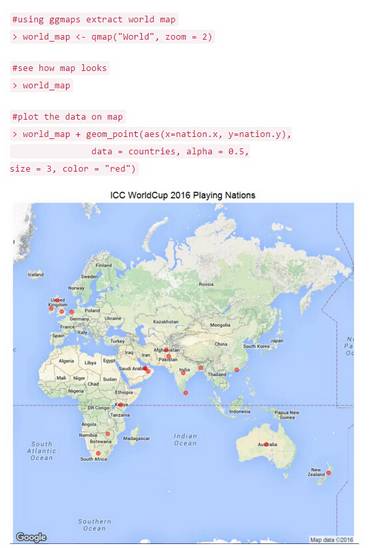 这很容易,是不是?我们还可以美化这个地图。如果你不熟悉世界地图,对你来说就很难找出这些国家的名字。让我们用ggmap package的功能设计这个地图。
