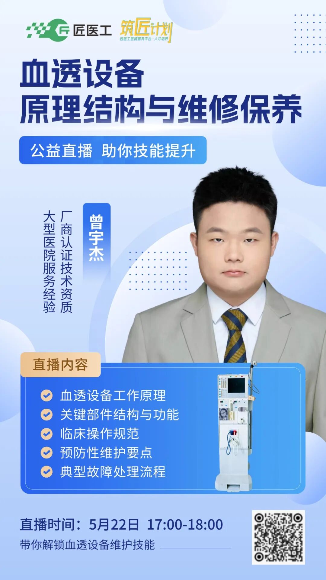 无论你是想要精进技术的医械维修人员,还是希望深入了解血透设备的医疗行业从业者,这场直播都将是你提升自我的绝佳机会!赶快扫码预约,锁定席位,与行业大咖共探血透设备的奥秘!