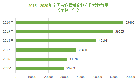 同时,医疗器械产品的创新能力有了显著的提高,2020年企业的专利授权达到65403件,同比增长10.79%;进入创新审批通道的产品有86件,同比增长34.3%。