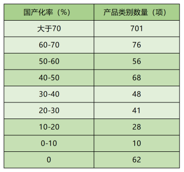 以二级产品类别的国产化为例,2020年,我国医疗器械国产化率达70%以上的产品类别超过700项,国产化率为0的产品类别仅为62项。