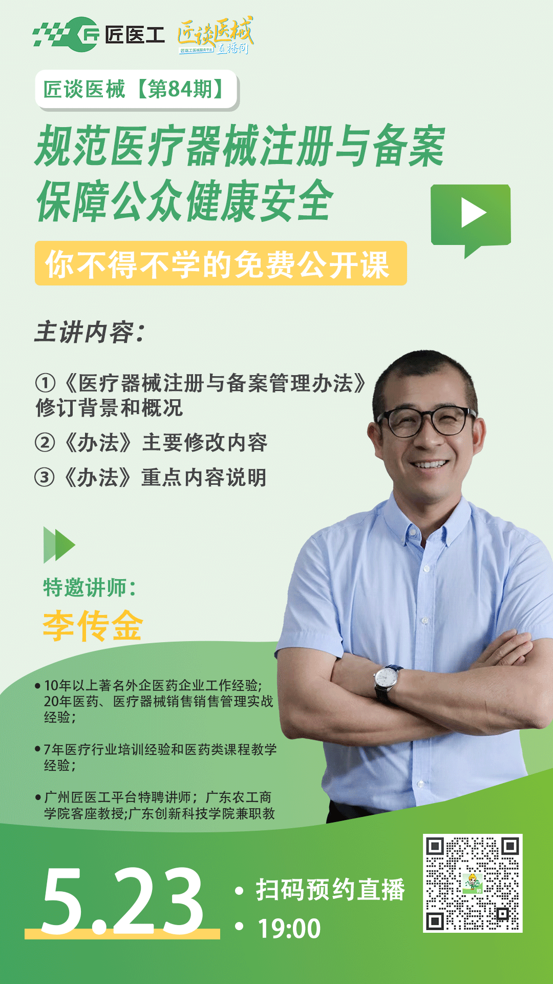 随着医疗技术的不断进步,医疗器械在现代医学中的作用愈发显著。然而,这些直接关系到人们生命健康的产品,其安全性和合规性必须得到严格保障。为此,我们特别邀请到医药与医械双领域专家李传金先生,为大家带来一场关于“规范医疗器械注册与备案,保障公众健康安全”的专业讲座。