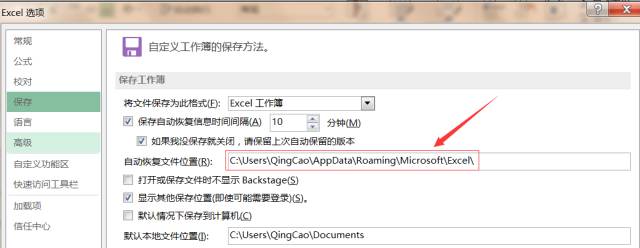 方法一:打开excel,点击文件>选项>保存>自动恢复文件位置,复制链接。