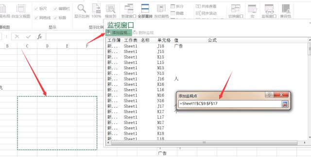 在excel表格中,就可以单击「监视窗口」,查看被监视区域的内容了。