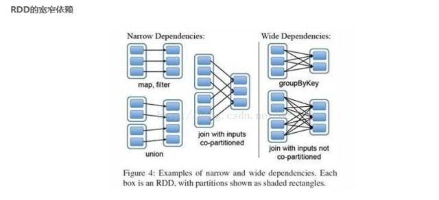 窄依赖(narrowdependencies)和宽依赖(widedependencies)。窄依赖是指父RDD的每个分区都只被子RDD的一个分区所使用。相应的,那么宽依赖就是指父RDD的分区被多个子RDD的分区所依赖。例如,map就是一种窄依赖,而join则会导致宽依赖