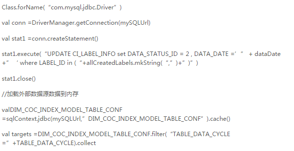 (在执行后台代码时,需要首先创建conf对象,加载相应参数,valsparkConf=newSparkConf().setMaster(“local”).setAppName(“cocapp”).set(“spark.executor.memory”,”1g”),valsc:SparkContext=newSparkContext(sparkConf))