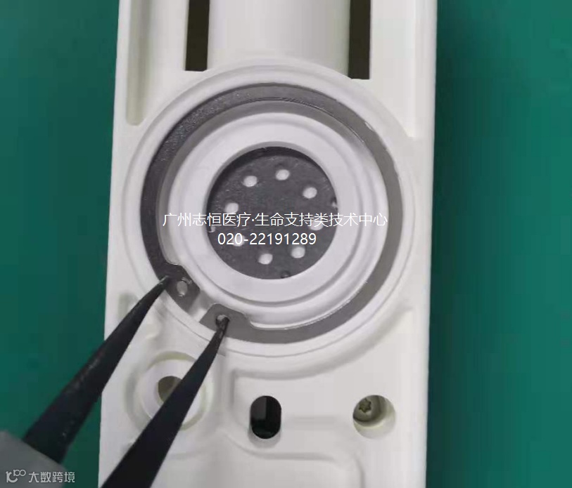 2. 用卡簧钳将呼气盒的膜片取下,取下后的膜片用酒精擦拭消毒风干;