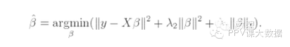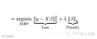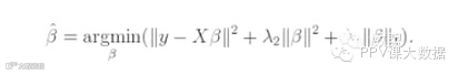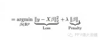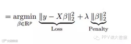 在这个公式中,有两个组成部分。第一个是最小二乘项,另一个是β2(β-平方)的λ倍,其中β是相关系数。为了收缩参数把它添加到最小二乘项中以得到一个非常低的方差。