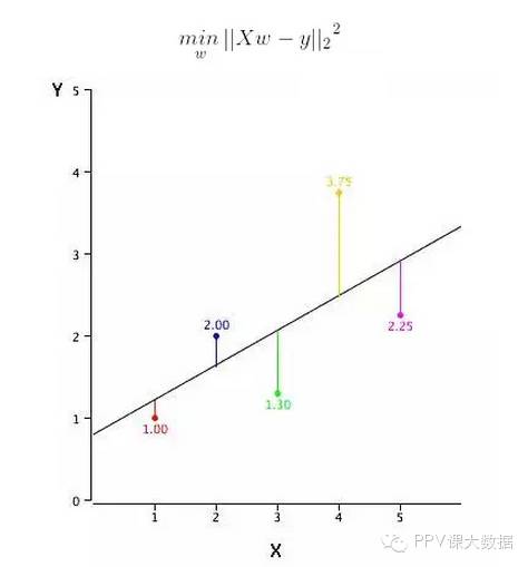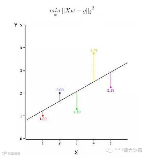 这个问题可以使用最小二乘法轻松地完成。最小二乘法也是用于拟合回归线最常用的方法。对于观测数据,它通过最小化每个数据点到线的垂直偏差平方和来计算最佳拟合线。因为在相加时,偏差先平方,所以正值和负值没有抵消。