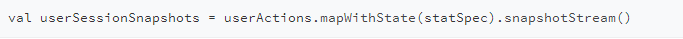 与updateStateByKey方法不同,任意数据都可以通过状态更新函数将数据发送到下游操作,这一点已经在前面的例子中有说明(例如通过用户会话状态返回用户模型),此外,最新状态的快照也能够被访问。