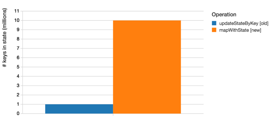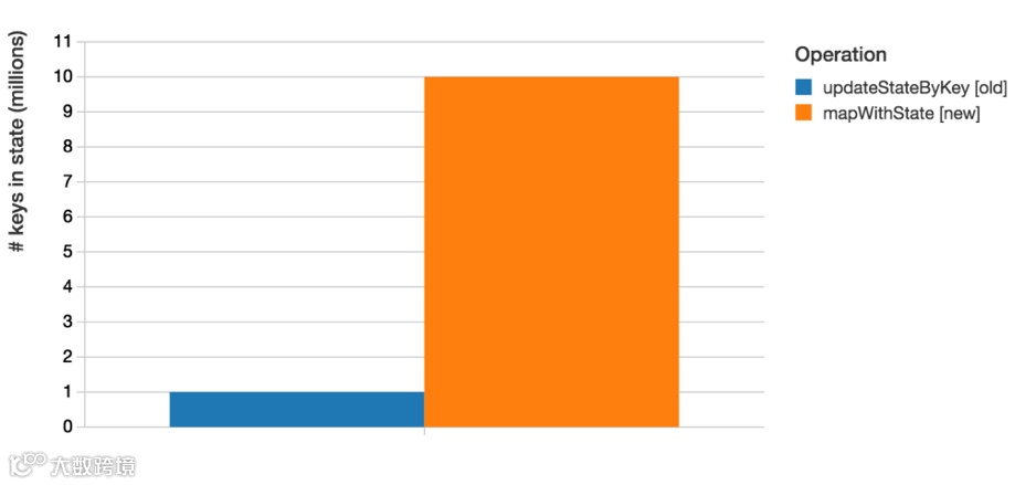 mapWithState方法比updateStateByKey方法管理的key数量多10倍