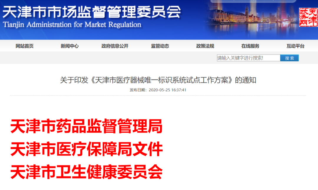 近日,天津市药监局、天津市医保局、天津市卫健委联合印发《天津市医疗器械唯一标识系统试点工作方案》(下称《工作方案》)。
