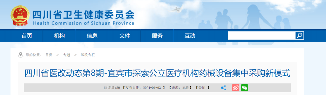 近日,四川省卫健委公布的第8期医改动态中,宜宾市以重塑采购体系为突破口,成功探索出了一种
