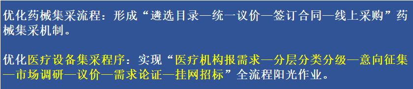 带量采购的药械和医疗设备集中采购。其中,针对公立