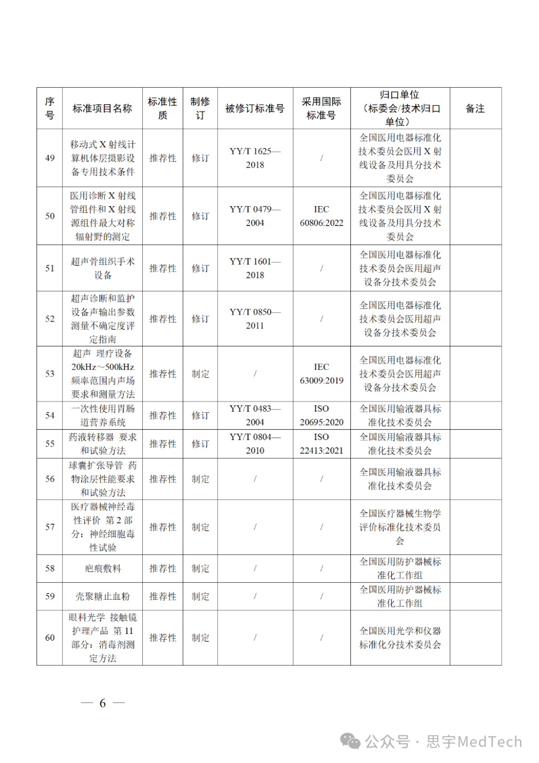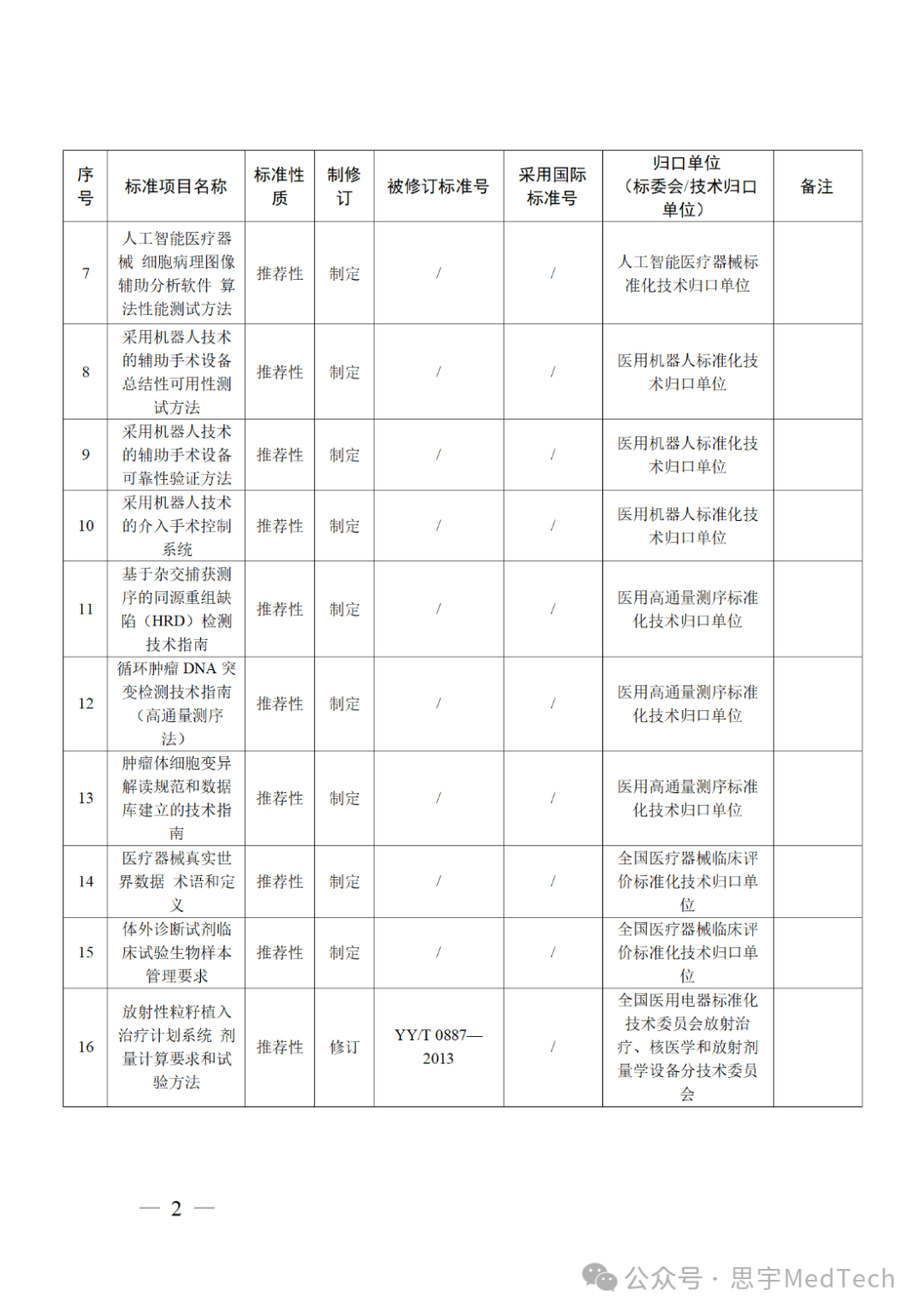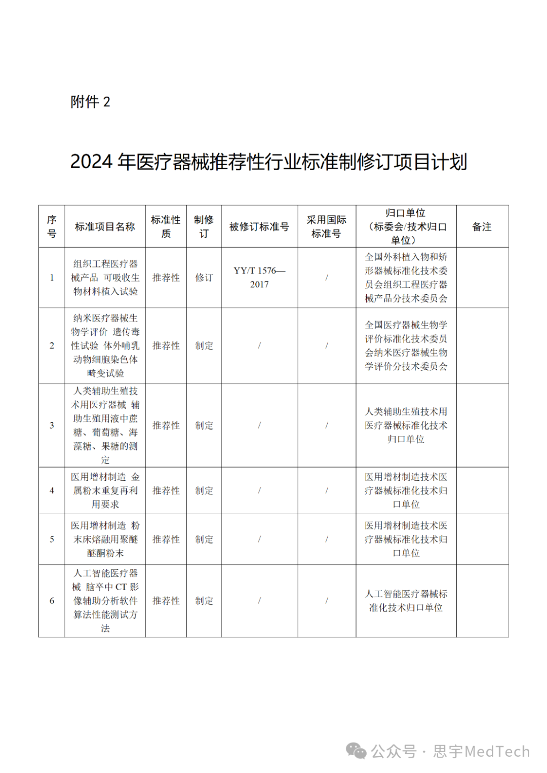 医疗器械行业标准制修订计划项目。