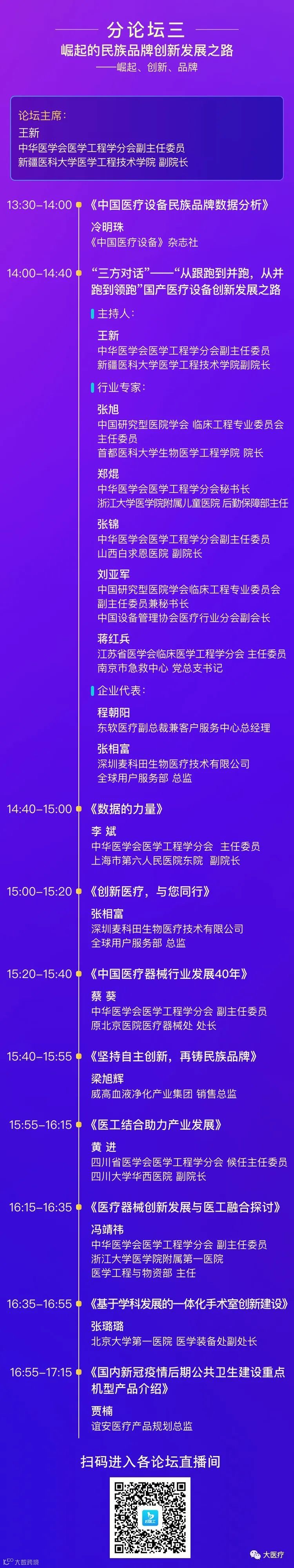 针对“数字诊疗装备”、“腔镜类及手术室类设备”“生命支持类及实验室设备”、“崛起的民族品牌创新发展之路”主题设置三大分论坛。