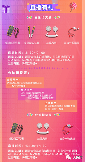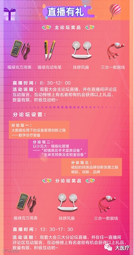 7月4日观看大会直播,参与互动留言、榜上有名者更有机会获得由福禄克公司提供的医工必备工具“万用表和试电笔”,数量有限,积极参与哦~
