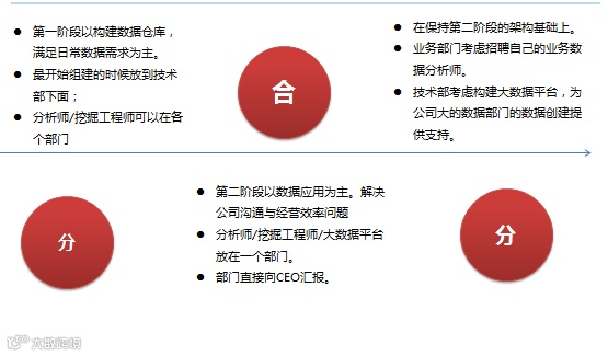 这个架构的坏处,如果部门组织的不好。会造成数据部门离业务比较远 ;有时候对于数据的思考不够深入,造成与业务部门的沟通成本上升。