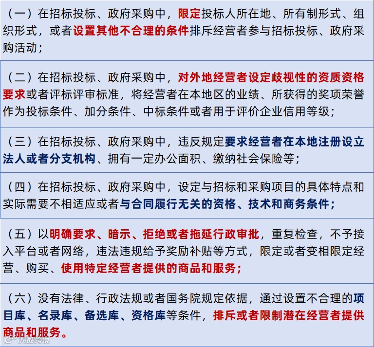 特别是在招投标和政府采购领域,《办法》在国家规定的四大类23项禁止性标准基础上,增设了六大重点项目,将开展重点审查。