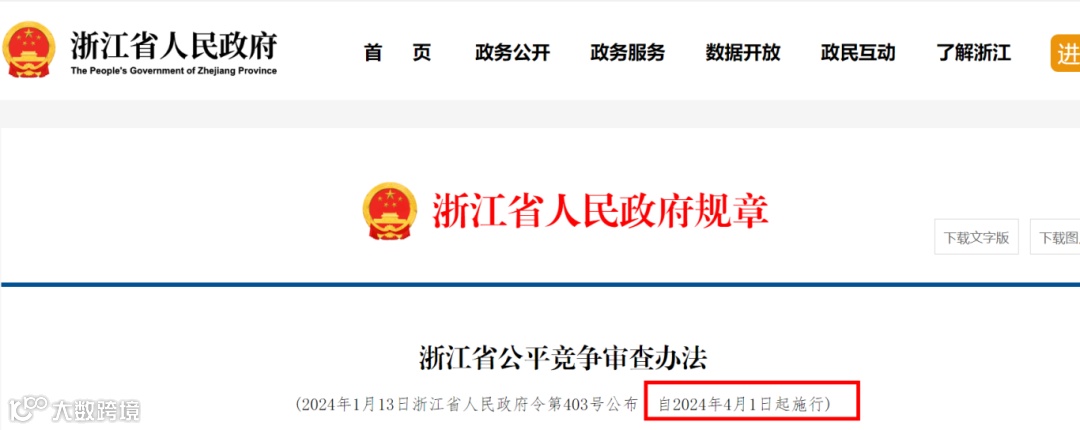 近日,浙江省人民政府网发布了《浙江省公平竞争审查办法》(以下简称《办法》),自4月1日起正式施行。