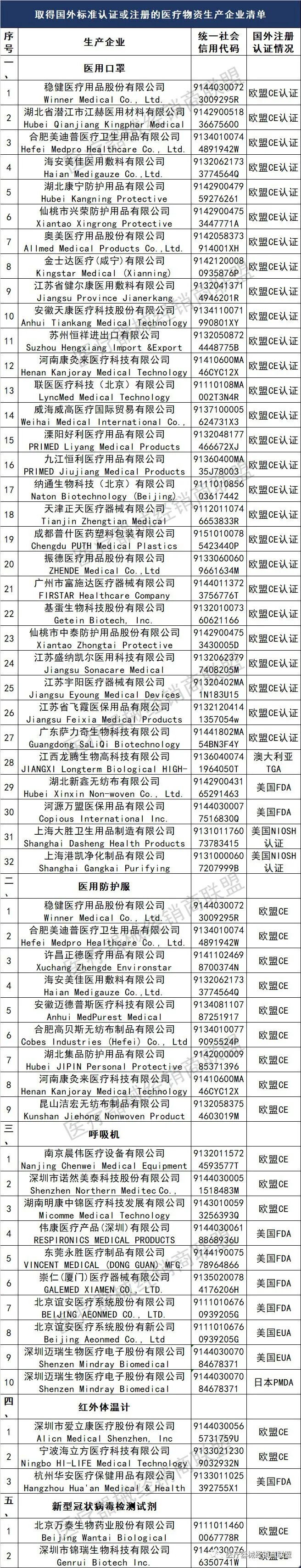 商务部确认取得国外标准认证或注册的非医用口罩生产企业清单(中国医药保健品进出口商会网站www.cccmhpie.org.cn动态更新)。