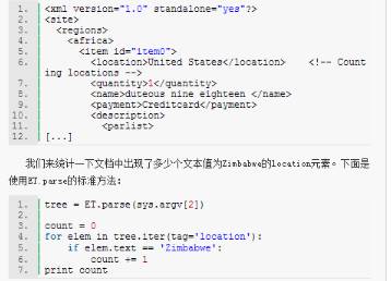 我们上面谈到,ET可以将XML文档加载为保存在内存里的树(in-memory tree),然后再进行处理。但是在解析大文件时,这应该也会出现和DOM一样的内存消耗大的问题吧?没错,的确有这个问题。为了解决这个问题,ET提供了一个类似SAX的特殊工具——iterparse,可以循序地解析XML。